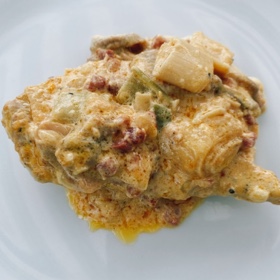 Die Jägersoße in die kalte Sahne einrühren und über die Schnitzel gießen.